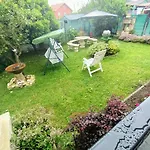 Det finns matplats utomhus och mathörna, tillsammans med kylskåp.